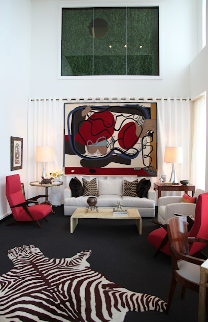 What I loved the most about Alexander Doherty's space was the pure "art" of it all. Every single thing in the room was a piece of art. From the wall application, to the furniture choices and colors, to the actual canvases and framed pieces. We spoke briefly about the cerused oak paneled walls, which I loved. It added such warmth and texture. I was told the red lacquered mid-century piece was Robsjohn Gibbons - love that !